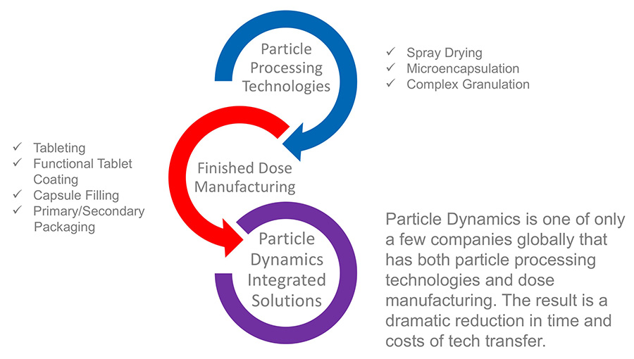 From lab to pilot and on to full commercial scale, our enabling technologies are employed for the production of our own highly functional materials used to make your products perform better. In addition, Particle Dynamics partners with our clients on highly functional custom manufactured materials and dosage forms.